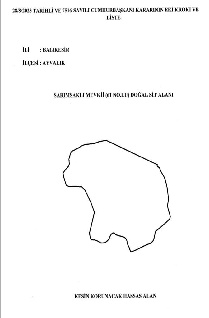 Ayvalık Kültür ve Tabiat Varlıklarını Koruma Girişimi Sözcüsü Av. Fulya Çalık Kantekin “Son dönemde Ayvalık’ın var olan tüm koruma rejimi üzerinde; rant için gerçekleştirilen ve gerçekleştirilecek suistimallerin önünü açmak üzere kurulan bir oyun oynanmaktadır. Özellikle rantın bugün ki konusu olamayacak küçük alanlar da sit koruma kavramları yükseltilirken rantın konusu olan yüksek nitelikte koruma altında olması gereken alanlar ise saldırgan şekilde betona ve yapılaşmaya kurban edilmekte. Bu siyasetin artık olmazsa olmaz kavramı “algı yönetimi” ile gerçekleştiriliyor. Yani halkın, bizlerin aklı ile dalga geçiliyor. Yakın zamanda Cunda’da, Ayvalık Adaları Tabiat Parkı’ndaki benzer girişimler, adalardaki, Badavuttaki girişimler aynı yöntemle yine Sarımsaklı mevkiinde, 7516 sayılı Cumhurbaşkanı Kararnamesi ile 61 No’lu doğal sit alanında sürdürülmekte. Görsellerimizde alanı ve ne kadar küçük bir metrekareyi kapsadığını inceleyebilirsiniz. Biz bu farkındalığın yaratılmasında ve AYVALIK talanına karşı mücadelede başta Ayvalık Belediyesi olmak üzere tüm kurumların son derece duyarsız, yetersiz, “dostlar alışverişte görsün” şiarı ile davrandığını gördük ve görüyoruz. Hepimize bu kenti her şeye tüm algı yönetimi çabalarına, rantın kenti yok etme noktasında saldırganlaştığı dönemde bilimin ve kent hakkı kavramının gerçekliğinde somut olarak hukukla, siyasetle en önemlisi daha da etkin örgütlenerek savunmak düşüyor. Başka Ayvalık yok.” dedi.