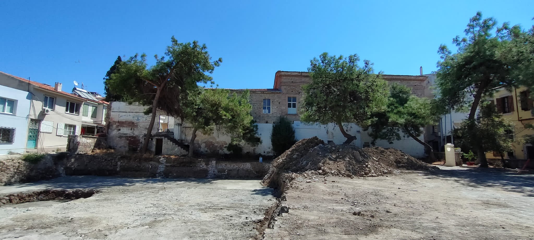 Cumhuriyet Polis Merkezi Amirliği temel kazısı ve inşaat çalışmalarının yapıldığı alanda tarihi Ayvalık Akademisinin temel kalıntıları ortaya çıktı.