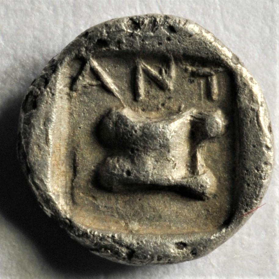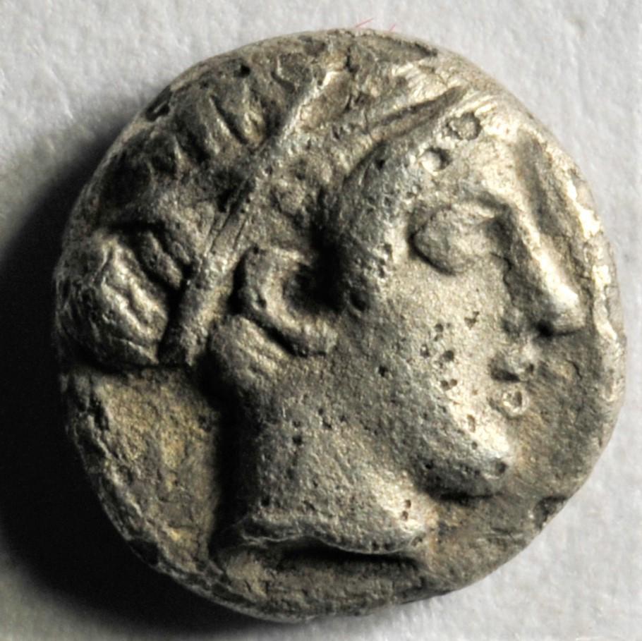 MÖ 4, yüzyılda Antandros kentinde basılan bu gümüş sikkede ön yüzde Tanrıça Artemis Astyrene’nin portresi, arka yüzde de “astragallus” yani aşık kemiği resmedilmiştir. Astragallus, antik çağda oyun veya fal bakmak için kullanılmıştır. 0,3 gram ağırlığındaki bu sikke 6 mm. çapındadır.