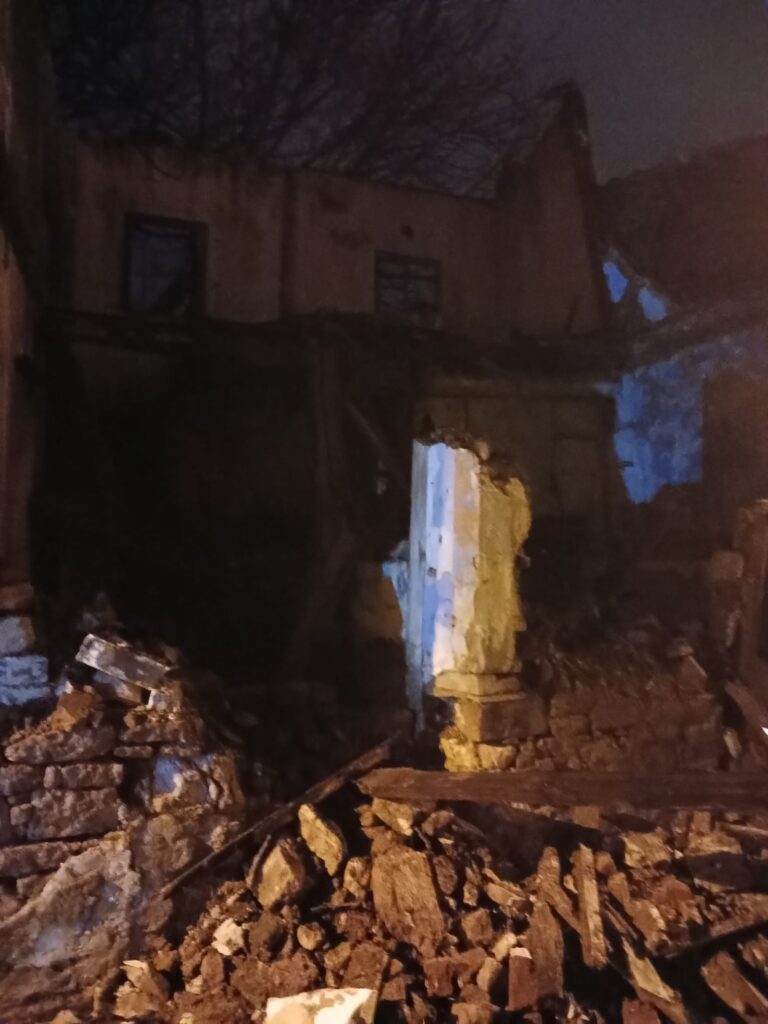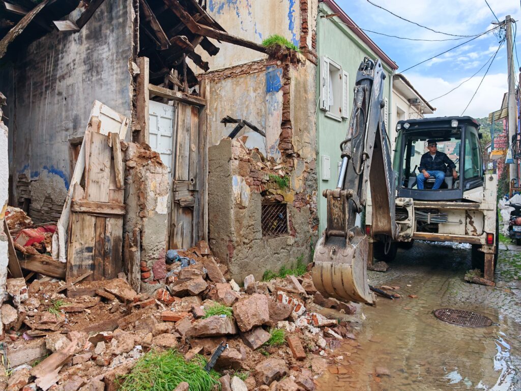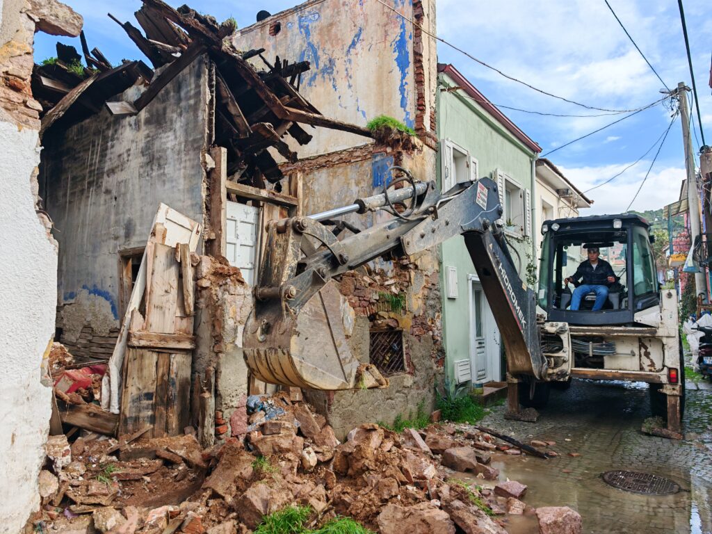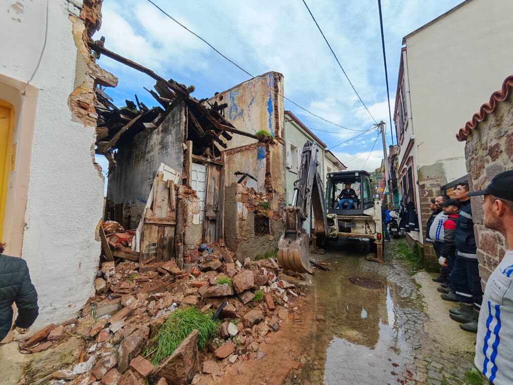 Etti. Ekipler, yıkılan binanın tehlike arz eden kısımlarına müdahale ederek gerekli emniyet tedbirlerini aldıktan sonra çalışmaları Ayvalık Belediyesi ekiplerine devretti. Belediye ekiplerinin yarın tamamlayacağı öğrenildi . itfaiyenin müdahalesi, 1 araç ve 4 personelle saat 22.10 sıralarında gerçekleştirildi.