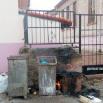 Ayvalık Hayrettin Paşa Mahallesi, Gazi Orta Okulu arka tarafındaki çöp konteynırlarının yanında bulunan kül kovası, atılan ateşli küller nedeniyle yandı.