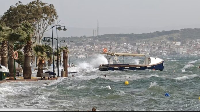Ayvalık ilçesinde fırtına nedeniyle Cunda Adasında taşan deniz suyu sahilin hemen arkasındaki sokaklara kadar ulaşıp, geçişi kapattı. Badavut sahilinde kumsalı yutan deniz suları ana caddeye ulaştı.