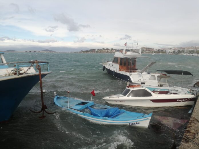 Balıkesir genelinde yoğun kar yağışı yaşanırken Ayvalık'ta hızı 90 km'ye ulaşan kuvvetli fırtına etkisi altında. Fırtına balıkçılara zarar verdi; sahil bandında bağlı teknelerin hasar görmesine ve batmasına neden oldu.