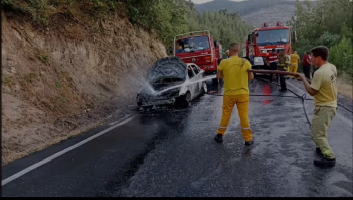 Balıkesir'in Havran ilçesinde asfalt yol üzerinde seyir halindeyken bilinmeyen bir sebepten dolayı yanan 35 KPS 56 plakalı otomobil kısa sürede tamamen yandı.