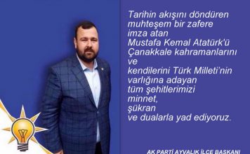 AK PARTİ İLÇE BAŞKANI ALİ GÜR, AYVALIK’ IN DÜŞMAN İŞGALİNDEN KURTULUŞ YILDÖNÜMÜNÜ KUTLADI