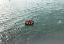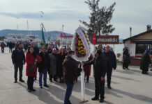 Ayvalık’ta yaşayan üçüncü kuşak mübadiller, Büyük göçün (Mübadele) 99. yıldönümünü denize çelenk ve karanfiller bırakarak andı.