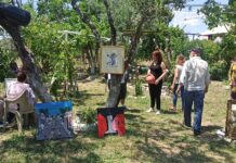 Ayvalık'ta yaşayan ressam ve sanatçılar, kentin sembol mekanı Şeytanın Kahvesi'ni işleten Suat Kaçak'ın zeytinliğinde açılan sergide buluştu.