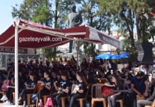 Milli Mücadelenin 100. Yılı nedeniyle 100 kişinin harmandalı zeybeği oynadığı Ayvalık’ta, bu kez 100 gençten oluşan koro ve orkestra Cumhuriyet Meydanı’nda konser verdi.