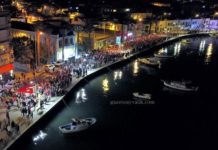 Öğretmen Evi önünden saat 19. 30'da başladı. Fener Alayına Ayvalık Kaymakamı...