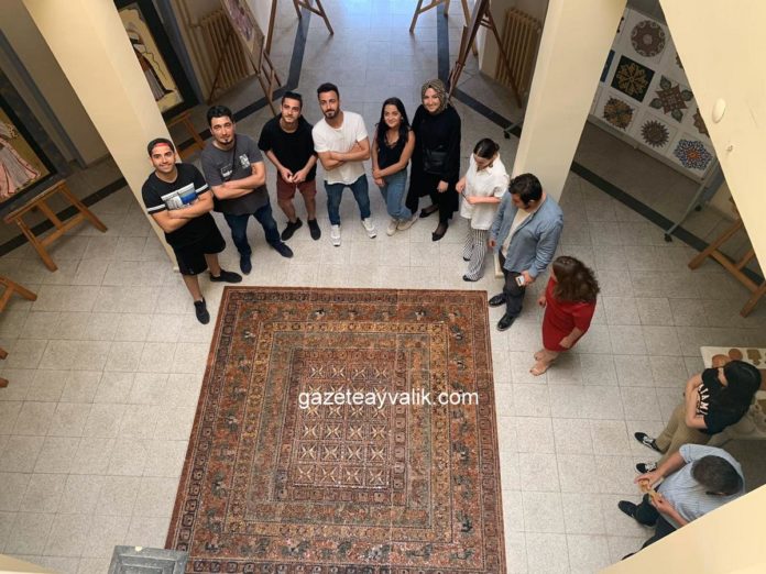 Ayvalık Meslek Yüksek Okulu (AYMEYO) Mimari Restorasyon Bölümü öğrencileri, okul giriş zeminine Türk Pazırık halı motifi yaptı.