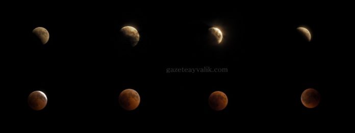 Nilgün KAYA - Fotoğraf: Kadri KAYA2018'in en muhteşem doğa olayı, 27 Temmuz Cuma akşamı gerçekleşti. Kanlı ay tutulması Türkiye saati ile 20.13'te başladı. 4 saat süren 21'nci yüzyılın en büyük tutulması Ayvalık' tan da izlendi. Tutulma sırasında ay 22.30-01.13 saatleri arasında tamamen karanlığa büründü. Dünya ve Mars gezegenlerin de en yakın konuma geleceği tutulma esnasında dünyanın gölgesi altında kalan...