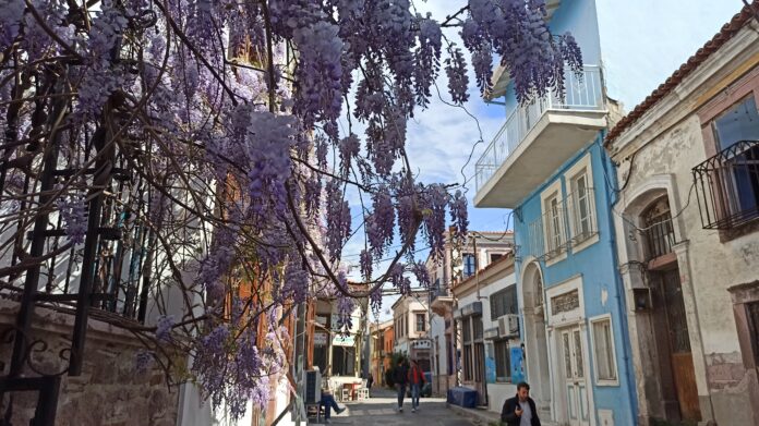 Ayvalık, Nisan ayında çiçekleri açan mor salkımlarla daha renkli ve romantik bir görünüme bürünüyor. Kente neşe katan bahar kokusunun kaynağı mor salkımlar, gün geçtikçe Ayvalık’la özdeşleşiyor.