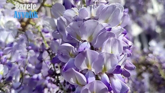 Zeytinin nefti yeşili ve Ege’nin mavi-turkuaz renkleriyle çevrili Ayvalık, bahar geldiğinde yeni renklerle donanıyor. Eflatun renkli çiçekleri, hoş kokusu, bambaşka güzellikteki görüntüsü ile mor salkımlar, Ayvalık’ın tarihi siluetine doğal güzellik katıyor.