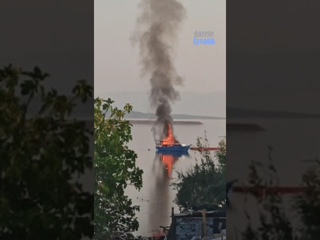 AYVALIK’TA BİR TEKNE DENİZDE YANDI