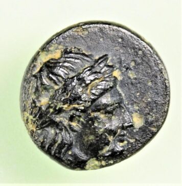 Ezine ilçesi, Dalyan mevkiinde kurulu Alexandria Troas kentinde basılan, İmparator Commodus’a ait (MS 178-193) bu bronz sikkenin ön yüzünde İmparatorun portresi, arka yüzde de ayakta duran ve elinde dal tutan Tanrı Apollon’u çıplak halde görüyoruz. Apollon’un sembollerinden kuzgun kuşu da yerde tasvir edilmiştir. Alexandria Troas,...
