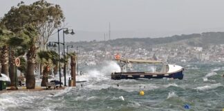 Ayvalık’ta fırtına nedeniyle deniz taştı, sokaklar suyla doldu